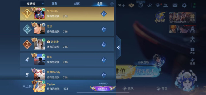 没错,王者荣耀至今有九年多历史了,在早期的时候,这款游戏的账号ID是可以随便取的。然而在中后期阶段,王者荣耀更新了ID取名系统,对于那些违规ID也是进行了重置处理。但是呢,王者荣耀里面还是有一些符合规定的游戏ID,尤其是那些明星ID,都是价值不菲的,尤其是那些正版ID。当然了,也有的玩家取了“王者荣耀”的ID,并且还是正版的,价值方面自然是比较高的。不过,在近期有玩家晒出V9稀有账号,虽然有298款皮肤但并不算啥,因为他的游戏ID全服仅此一个。
